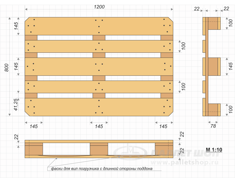 Деревянные детали поддонов изготавливаются из пиломатериалов хвойных пород не ниже 3 сорта.