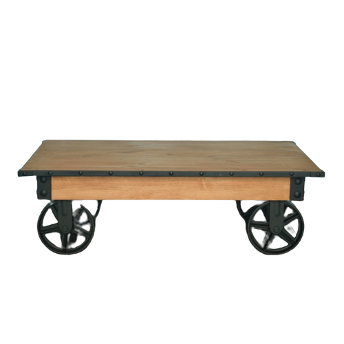 Столешница выполнена из дуба щита 30 мм толщиной, имеет металлическое обрамление из листового металла. Ножки выполнены в стиле колесных опор. Габариты: В-400; Ш-1000; Г-600. Покрытие металла грунт эмаль 3 в 1, дерево воск.