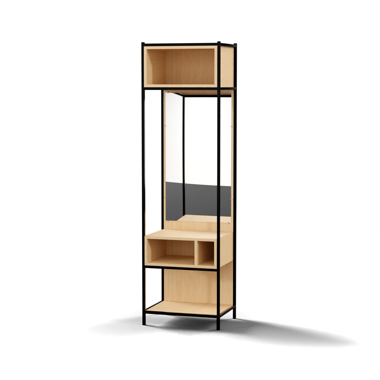Секция состоит из металлического каркаса из стальной профильной трубы 20х20х2мм и ламинированной древесно-стружечной плиты толщиной 18 мм. Заглушка для профильной трубы идет как ножка.