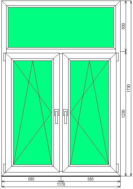 Окно ПВХ: ОПА 1730х1170 П/О и П/О СП1, двухстворчатое, две створки поворотно-откидные, однокамерный стеклопакет 24 мм.