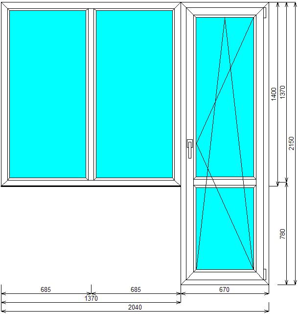 Балконная группа ПВХ 2150х670 П