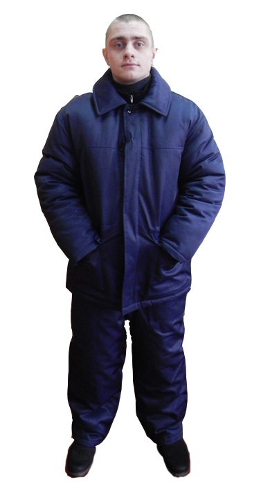 Костюм мужской, Тн. Модель М 008.11. СТБ 1387-2003. Материалы: ткань для спецодежды «Грета» х/б - 51%, п/э - 49%, плотность - 210 г/м2; утеплитель синтепон 200 г/м2 , ватин холстопрошивной п/ш 150г/м2, подкладка - 100% х\б. Карманы боковые накладные на куртке и брюках. Воротник отложной. Застёжка потайная на пуговицы и петли. Рукава втачные. Брюки с притачным расширенным утепленным поясом.